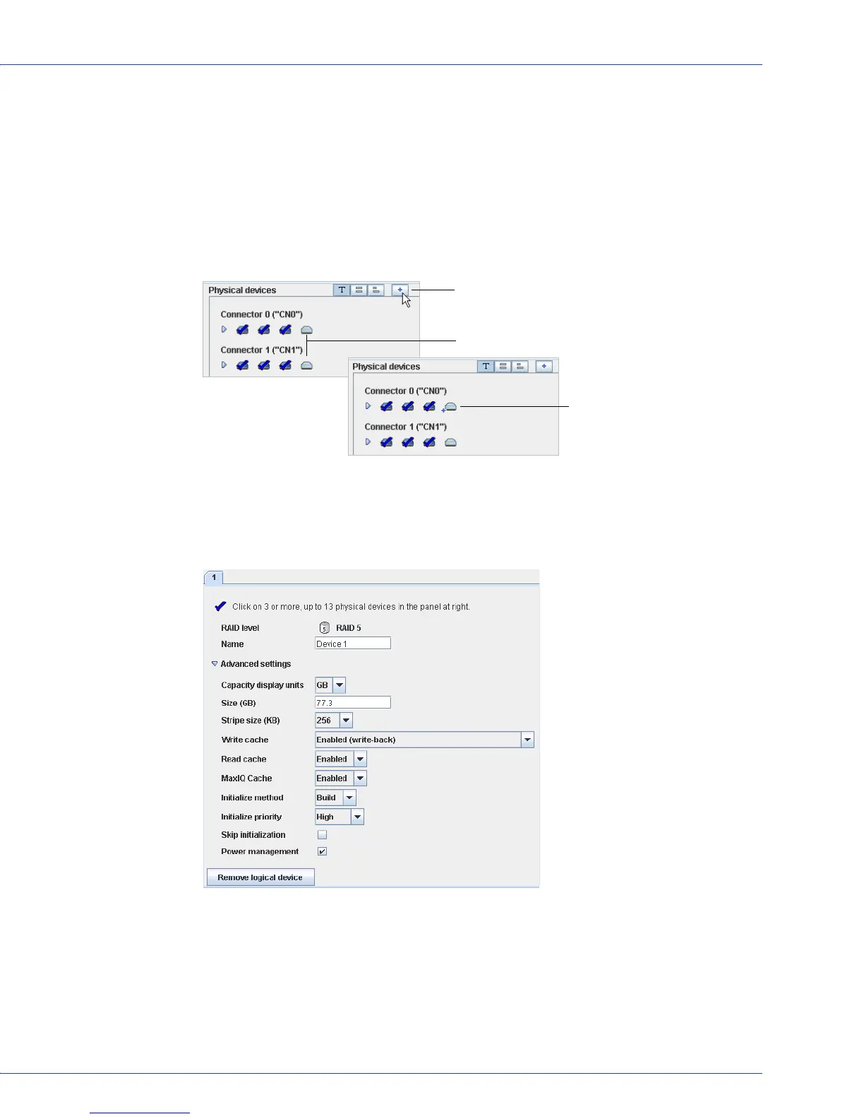 By default, Adaptec Storage Manager automatically sets the size of the logical drive and