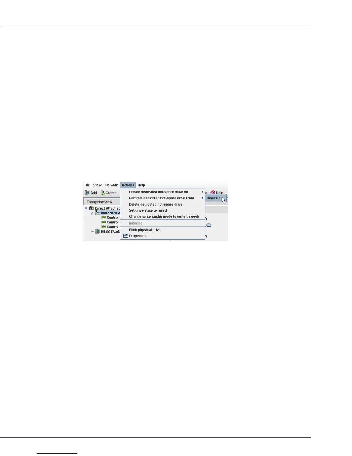 3 In the menu bar, select Actions, then click Delete dedicated hot-spare drive, or click