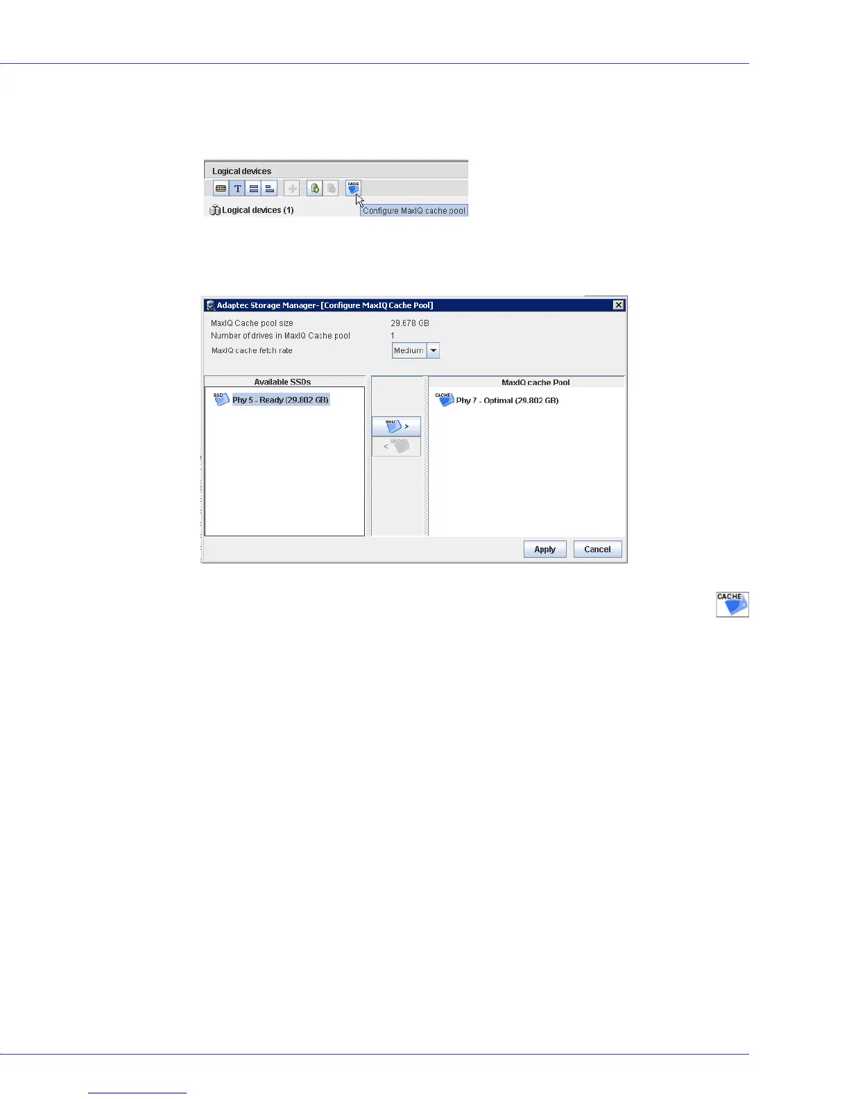 1 In the Logical Devices View, click the Configure MaxIQ Cache Pool button.