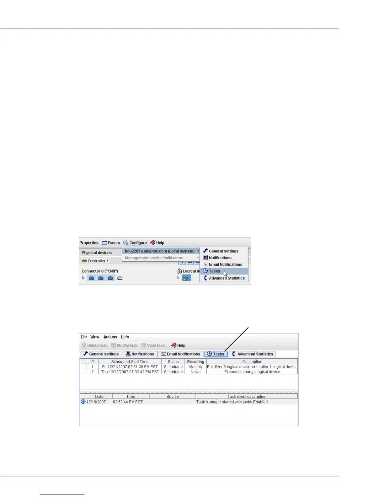 panels, as shown in this figure. All scheduled tasks for the system appear in the task list; all