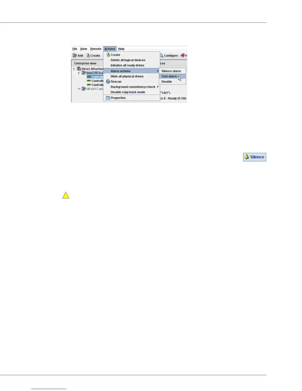 To silence the alarm, click the Silence button (shown at right) in the main Adaptec