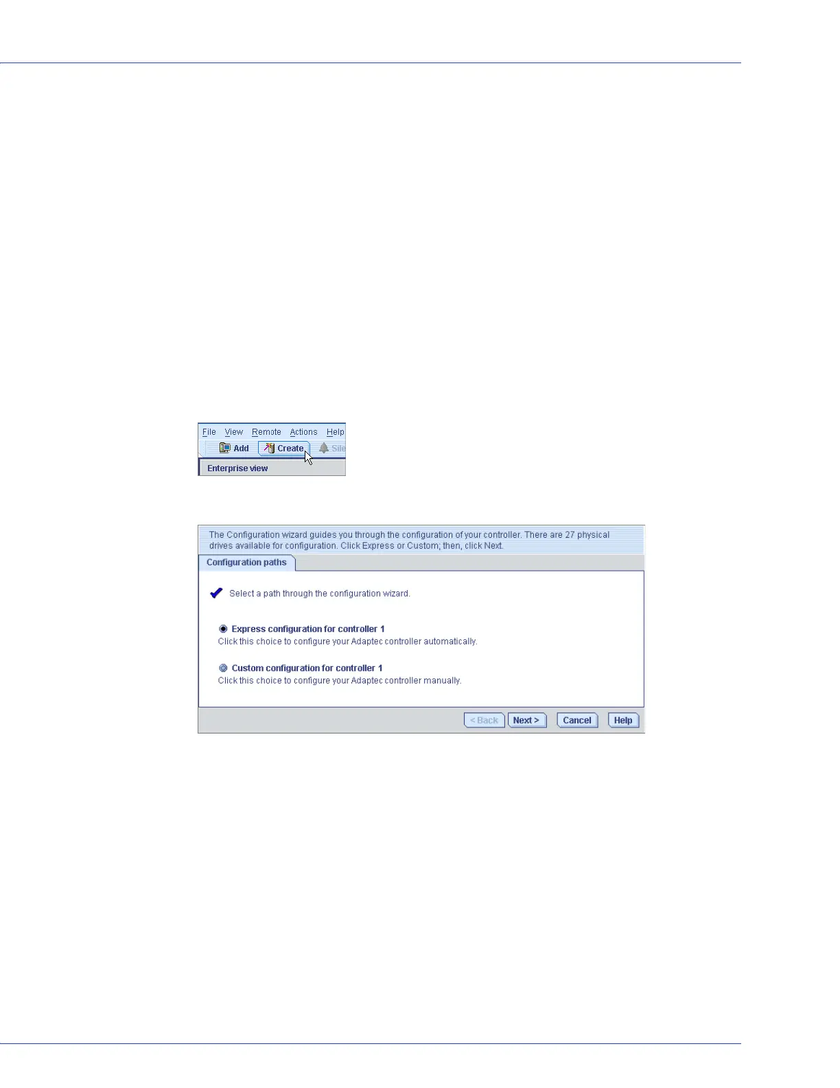 This section describes how to use the Adaptec Storage Manager configuration wizard to build a