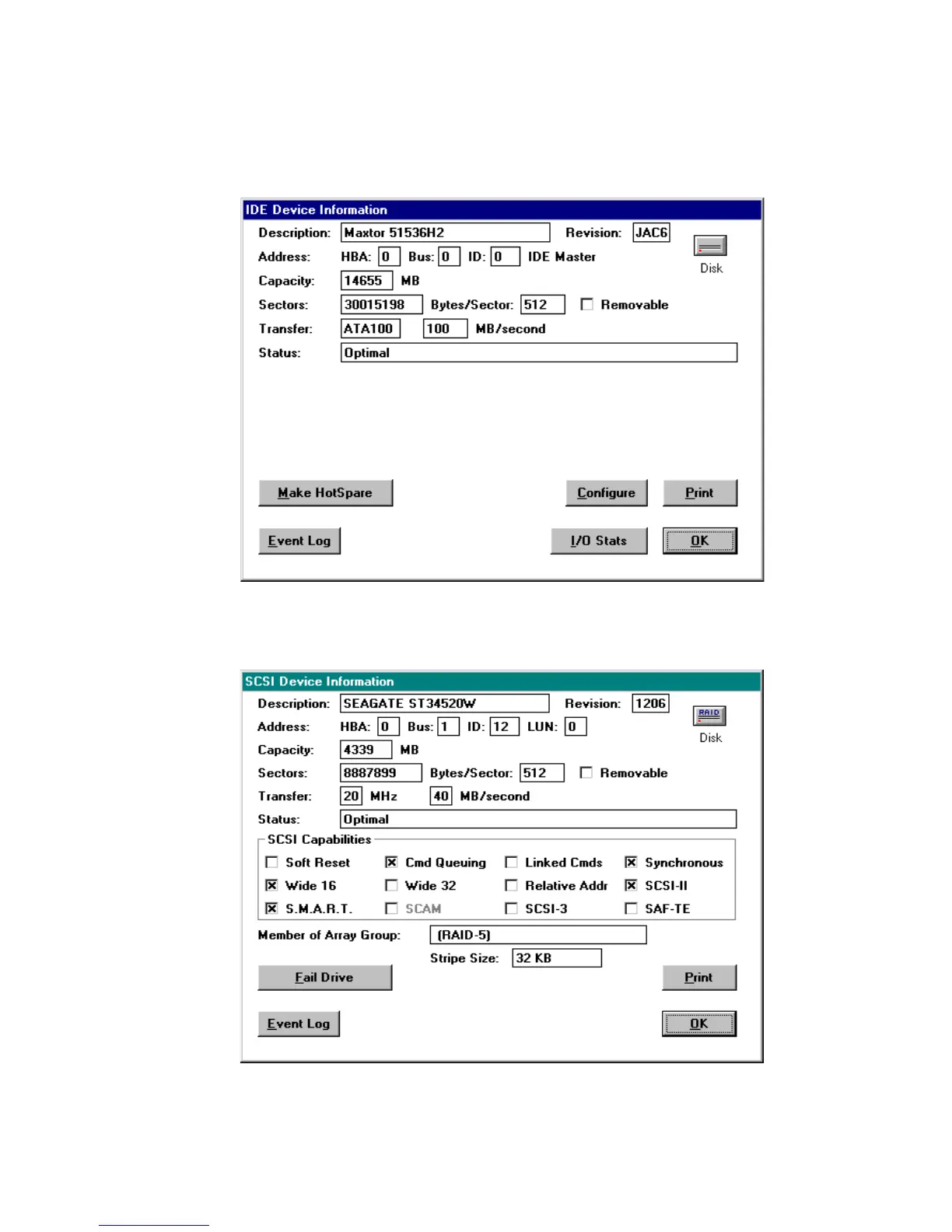 Adaptec RAID 2100S - Device Information Window