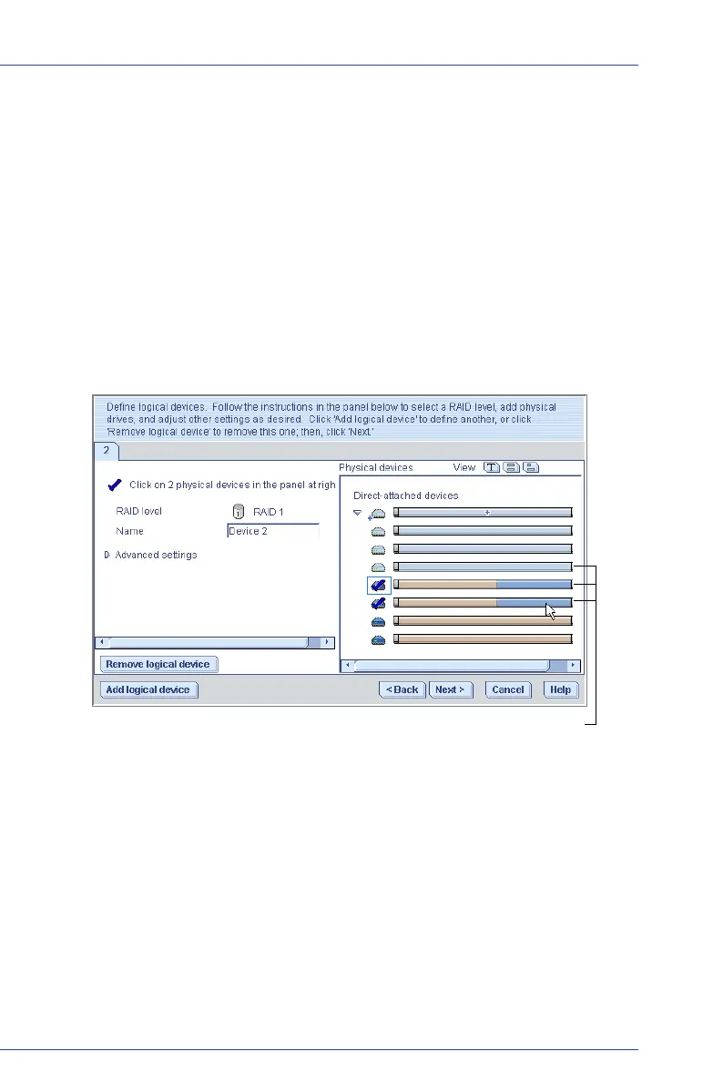 2 In the Physical Devices panel, select the disk drives and/or free disk