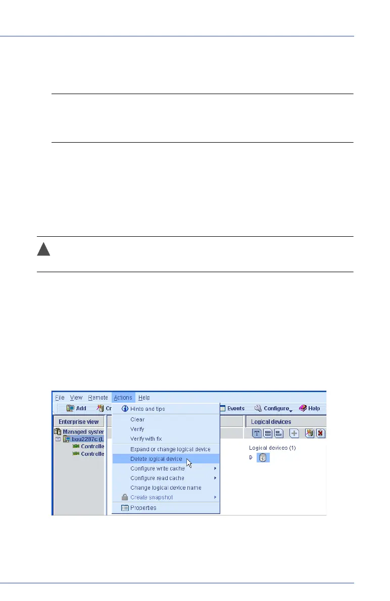 Caution: When you delete a logical drive, you lose all data stored on