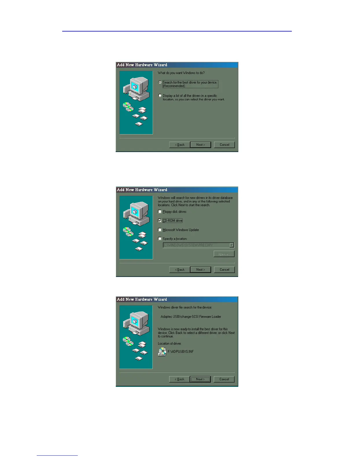 5 Select CD-ROM drive for the Add New Hardware Wizard to search