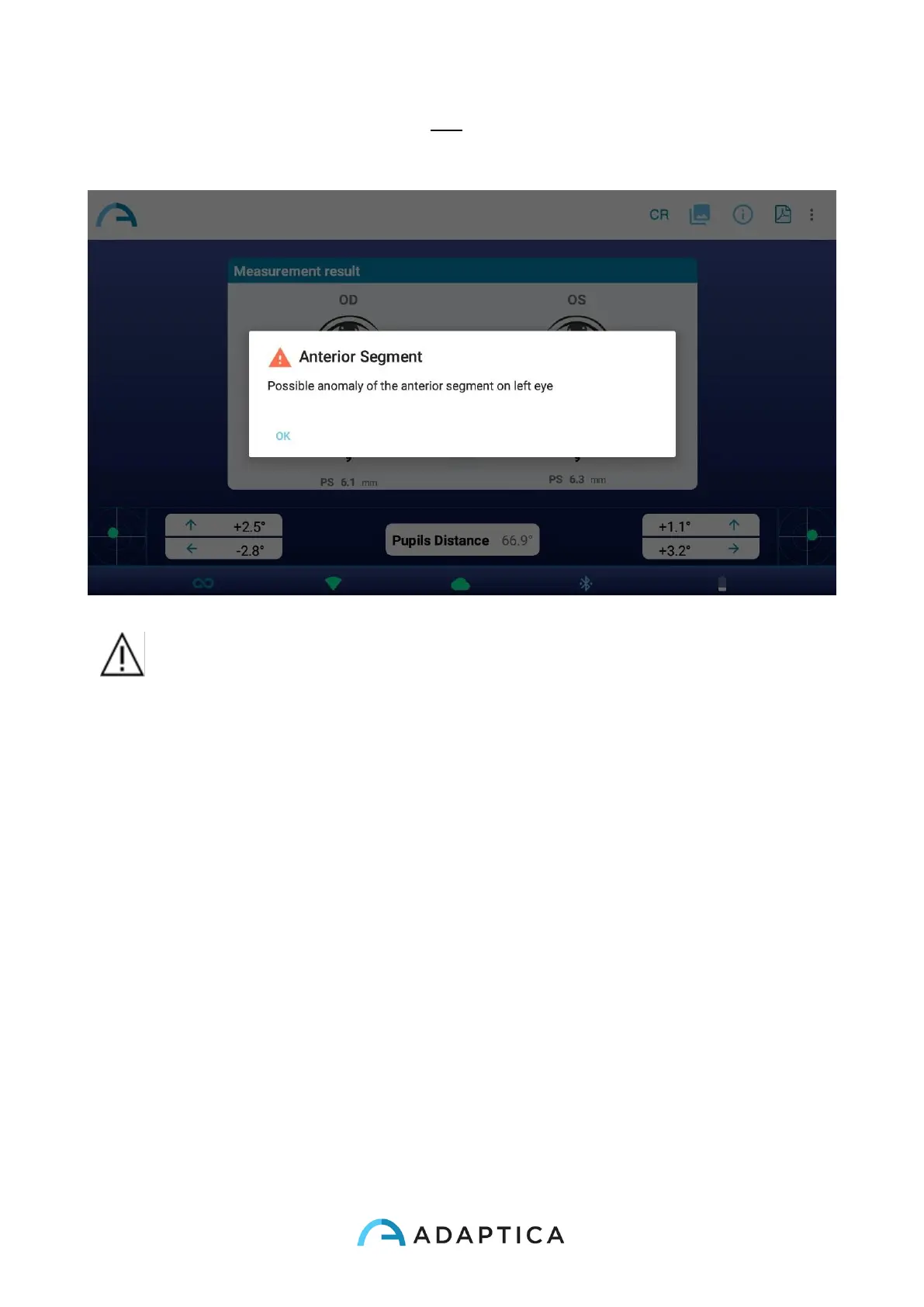 WARNING: the message “Possible anomaly of the Anterior Segment” shall