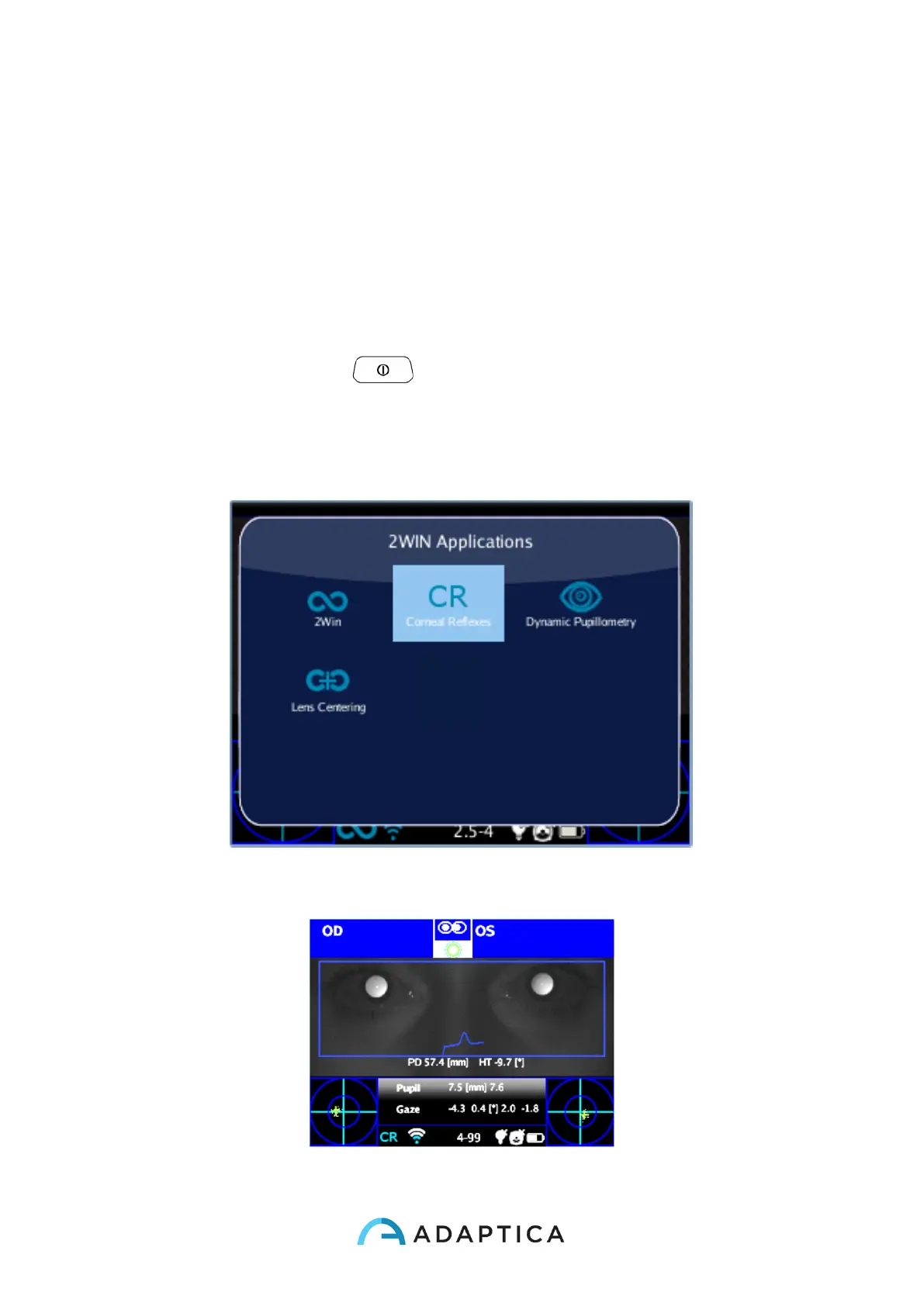 By clicking with the cross BUTTON on the corneal reflexes Application icon, this Application
