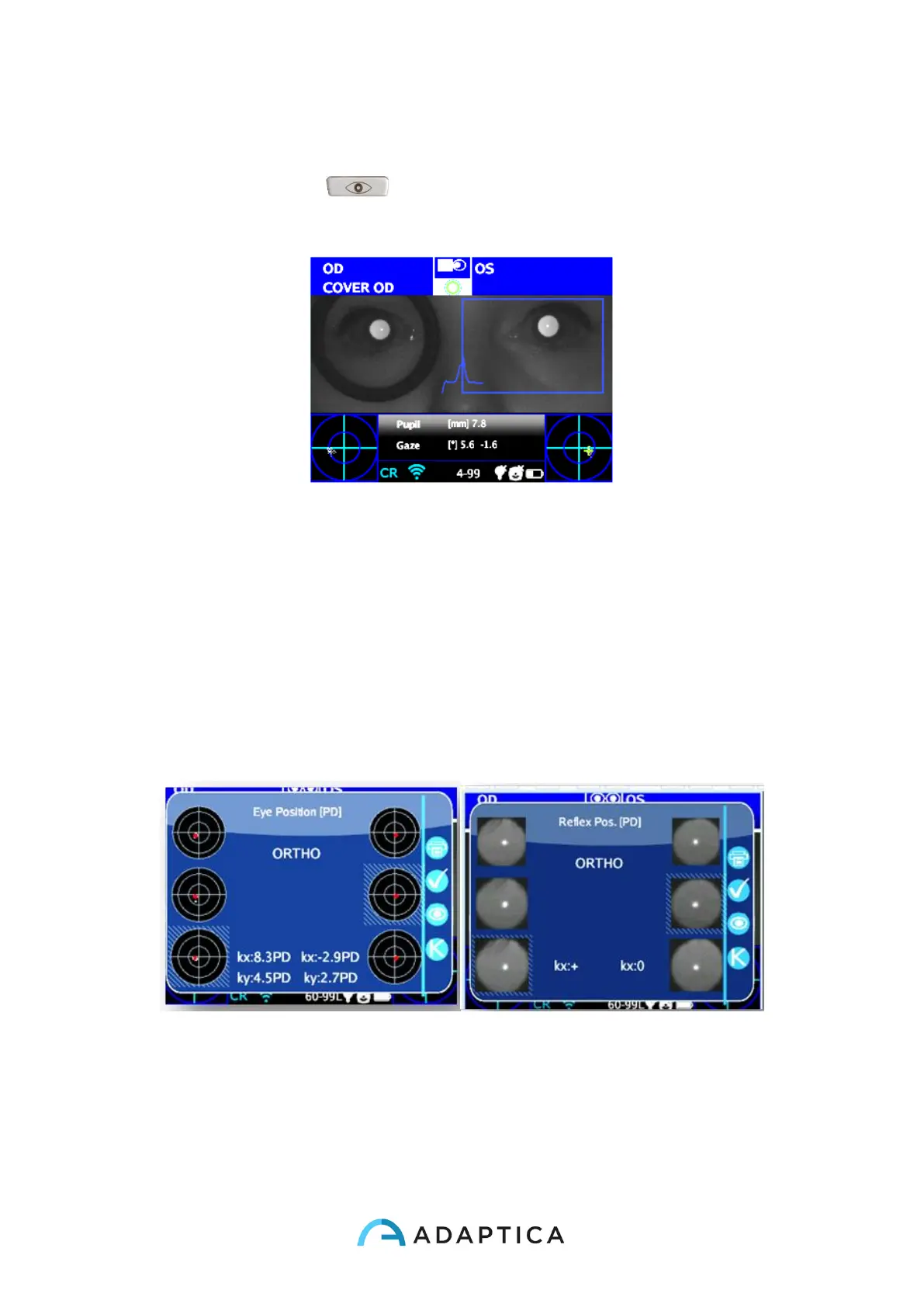 Once completed the test, auxiliary window for the corneal reflexes analysis is opened