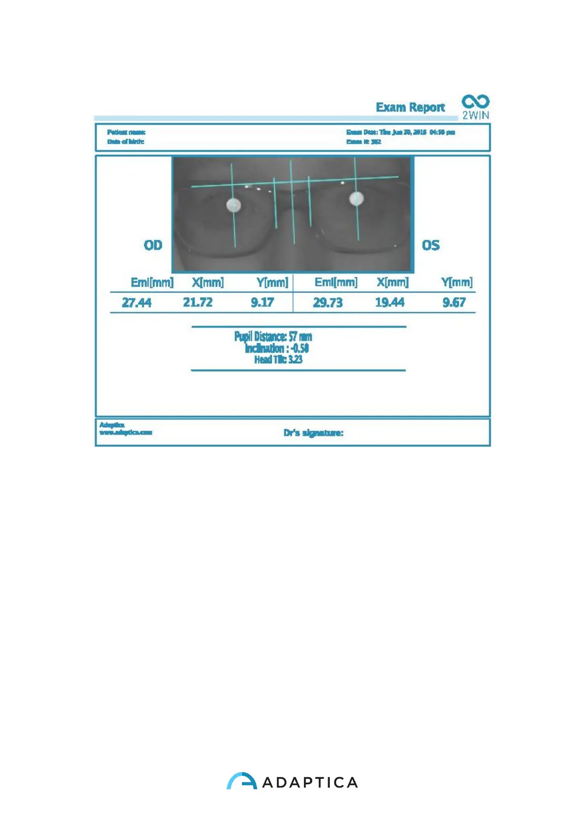 The PDF Report is composed of the lens centering graphic and the corresponding data.