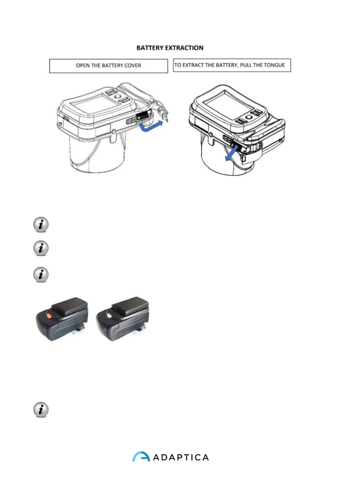 WARNING: to guarantee the correct battery charging keep the battery charger