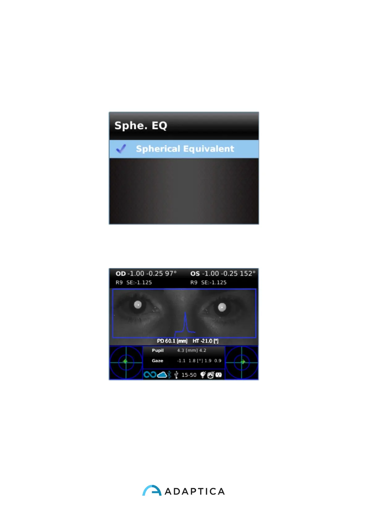 Spherical Equivalent value will be displayed both in measurement mode and in browsing