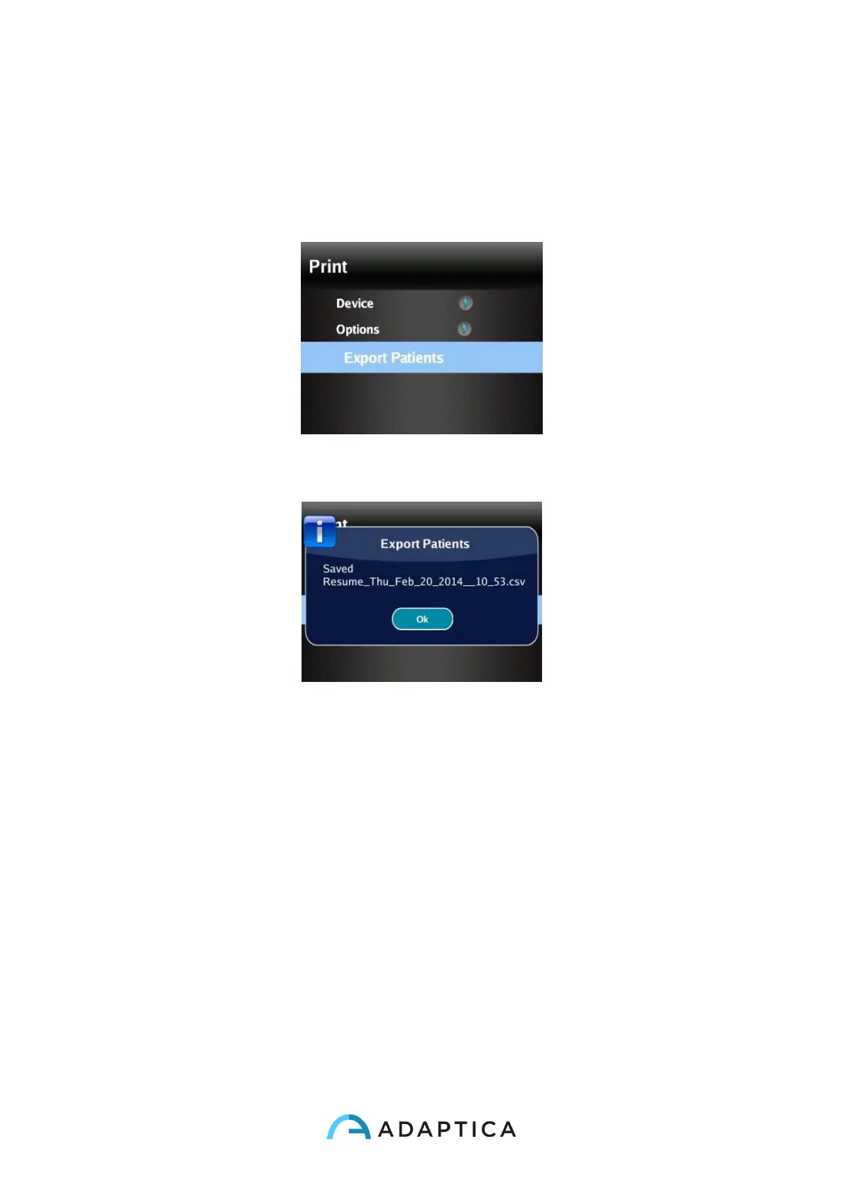 Select “Export Patient” from Menu>Print