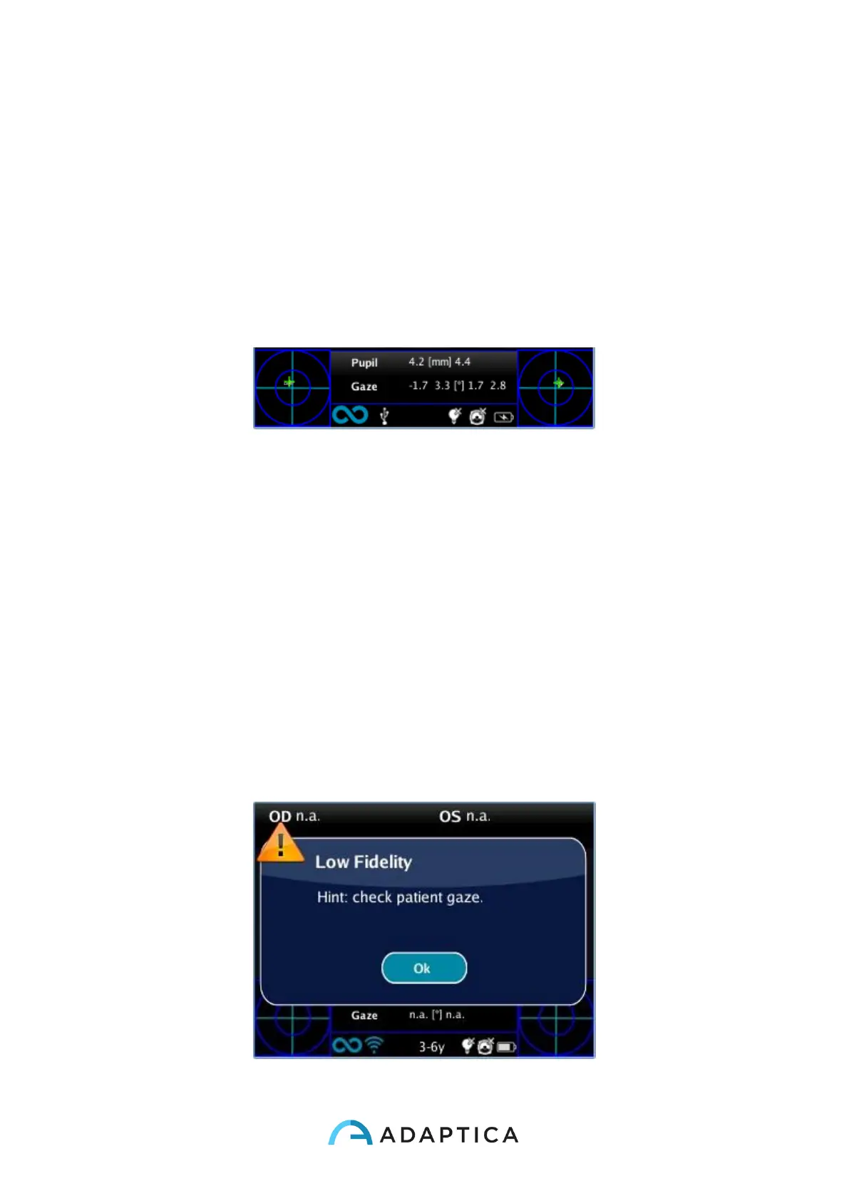 If a patient doesn’t focus on the central front led a warning will appear on the display: