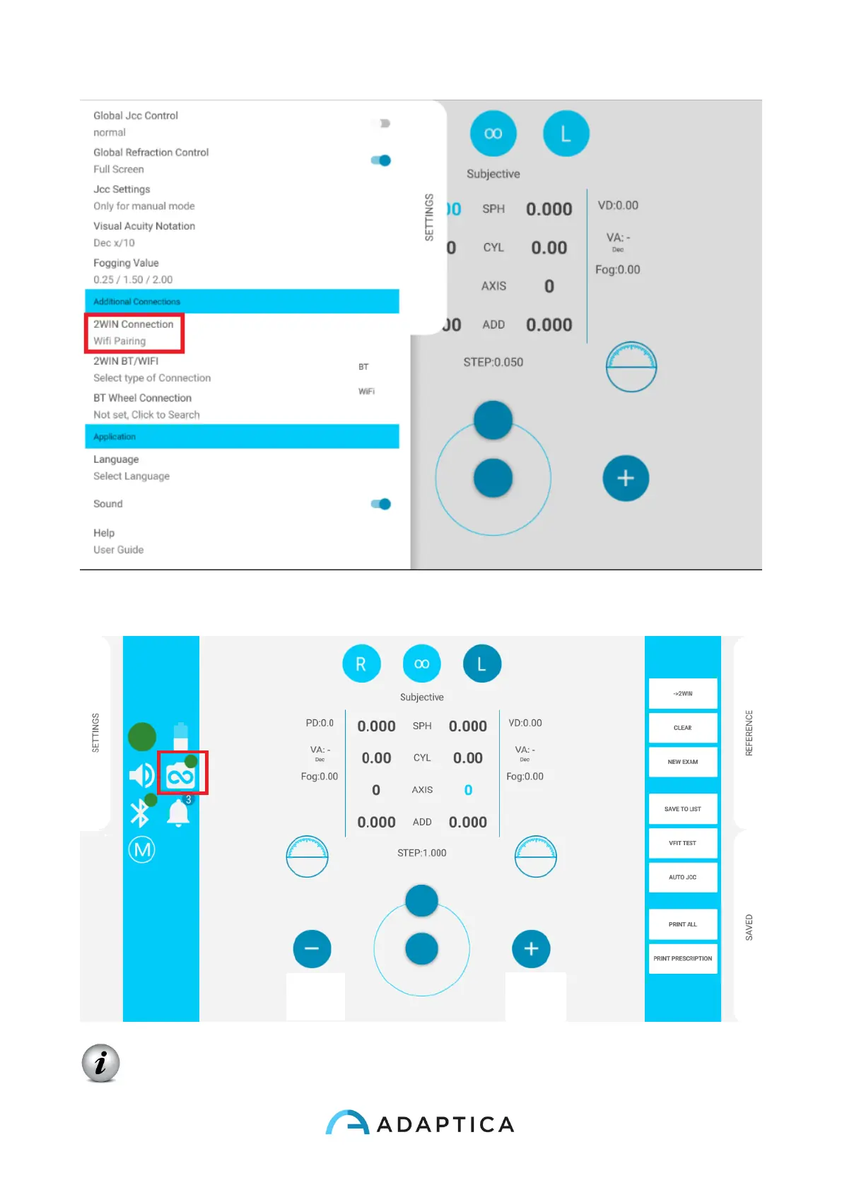 5. When the pairing is complete a green circle appears on 2WIN icon on VisionFit