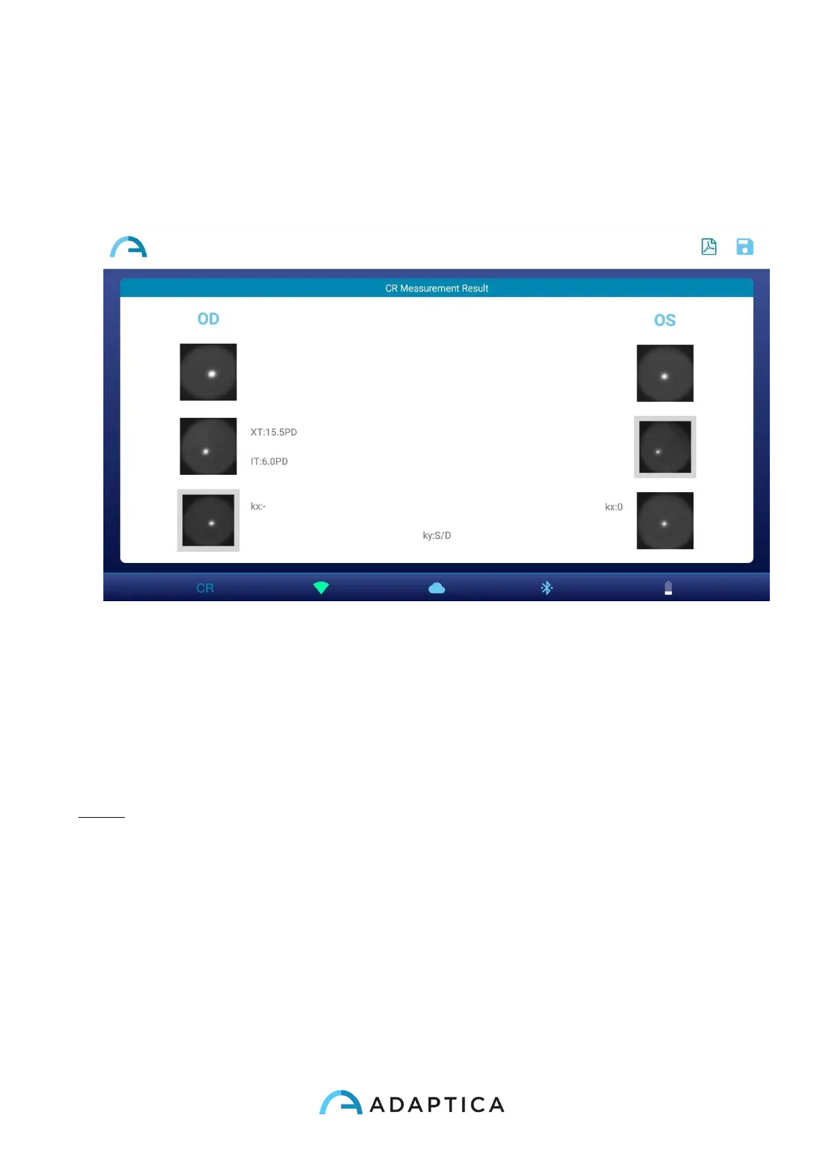 8. Create the exam report by pressing on the PDF Report button on CR Measurement