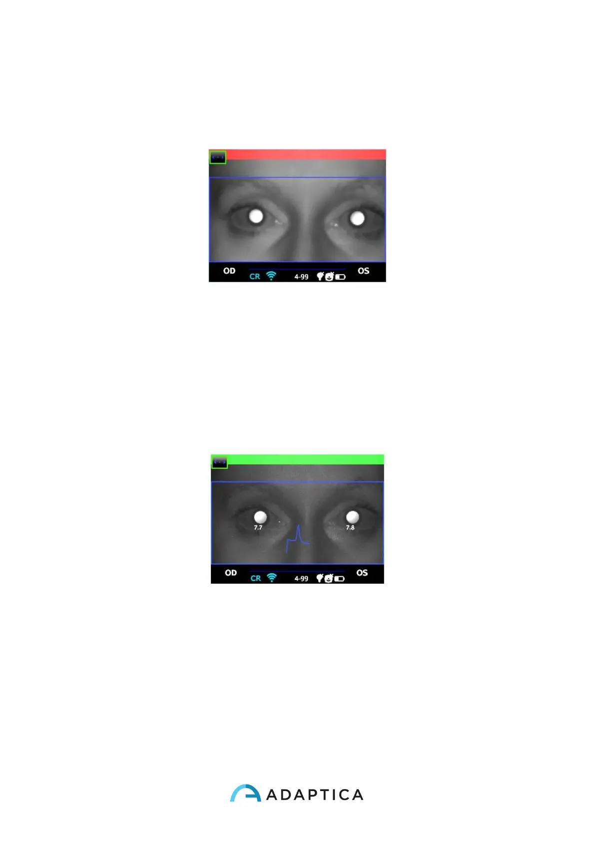 3. Center the eye/s of the patient in the display live area, inside the blue rectangle