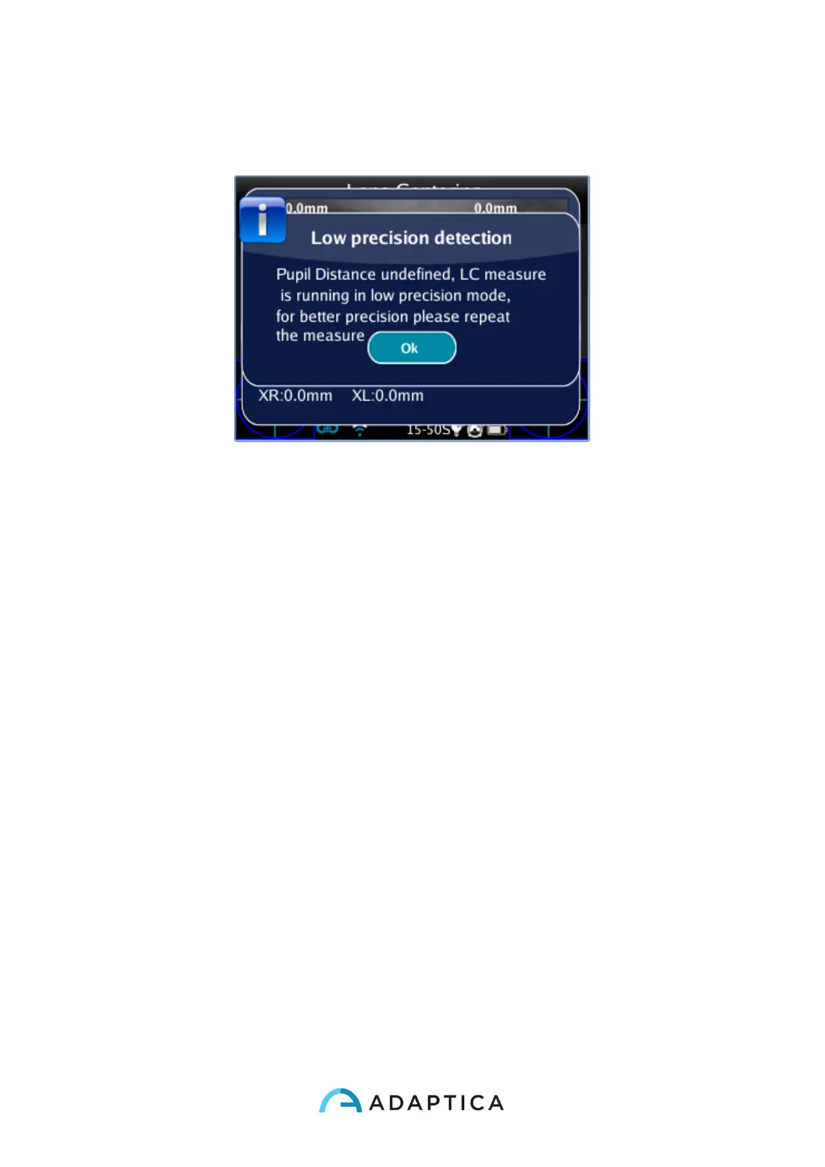 If the Pupil Distance is not valid, the LC App shows a warning message because has no