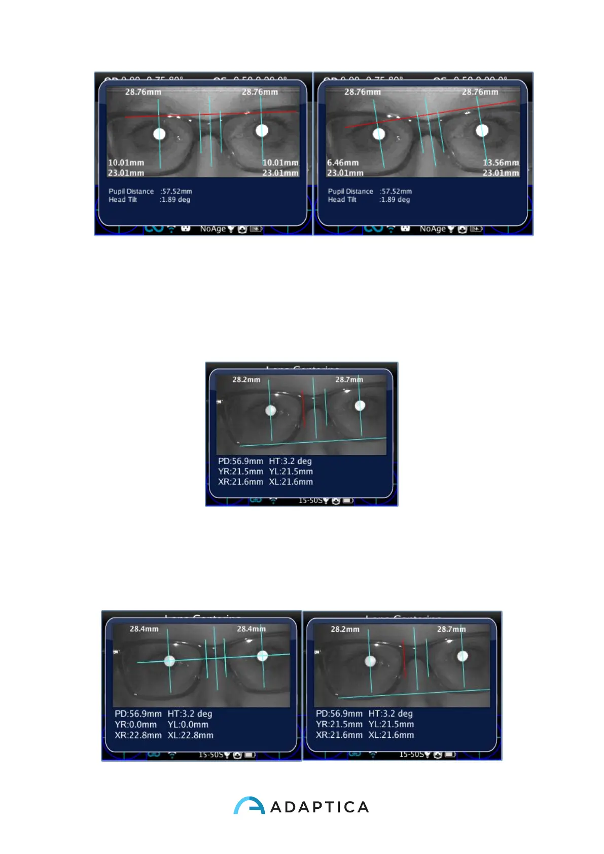 move the axes along the horizontal axis between the pupils. The central axis will be