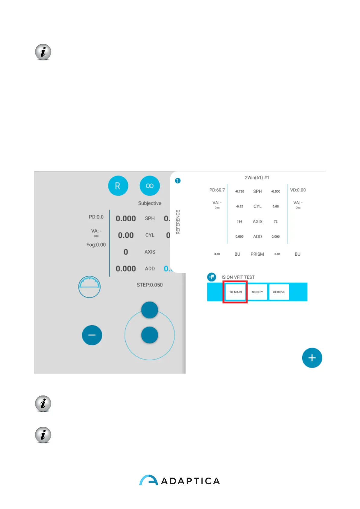 2. Press TO MAIN button on VisionFit SC application to add data to the Subjective