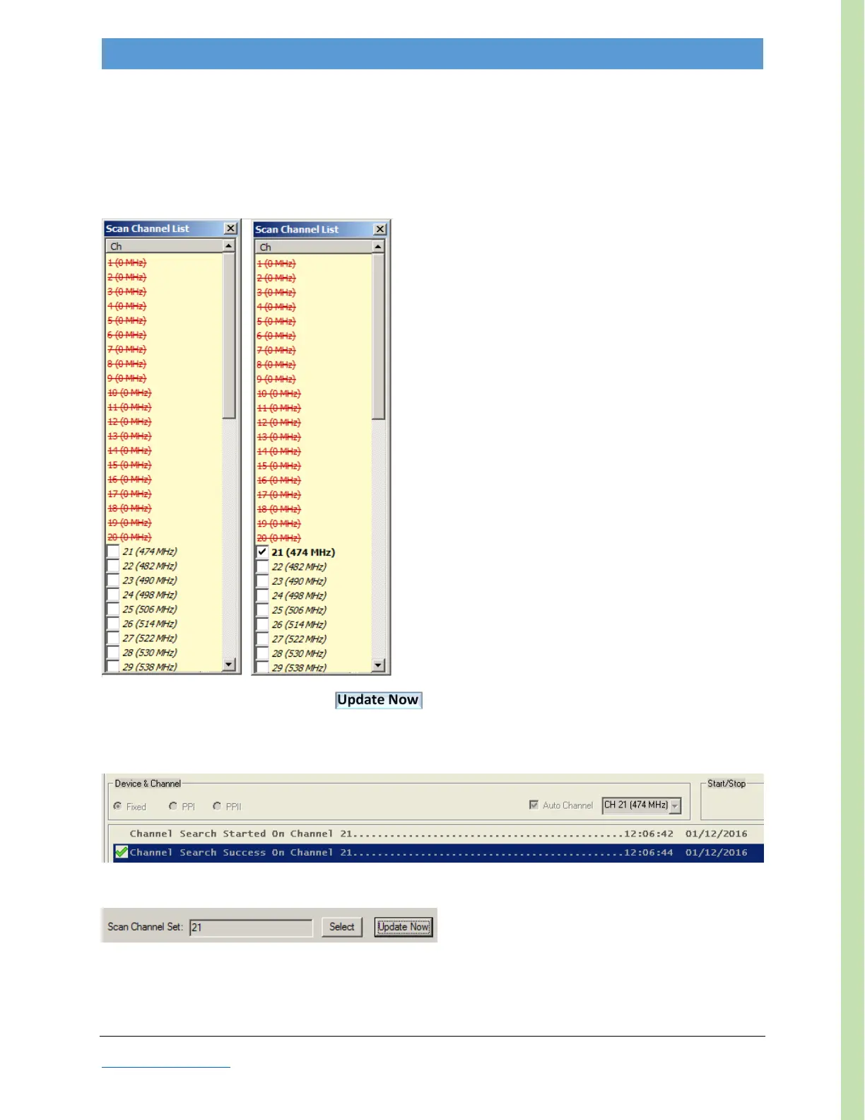 The Scan Channel List opens (left image); select the channels you plan to operate your BASE(s) on (right image).