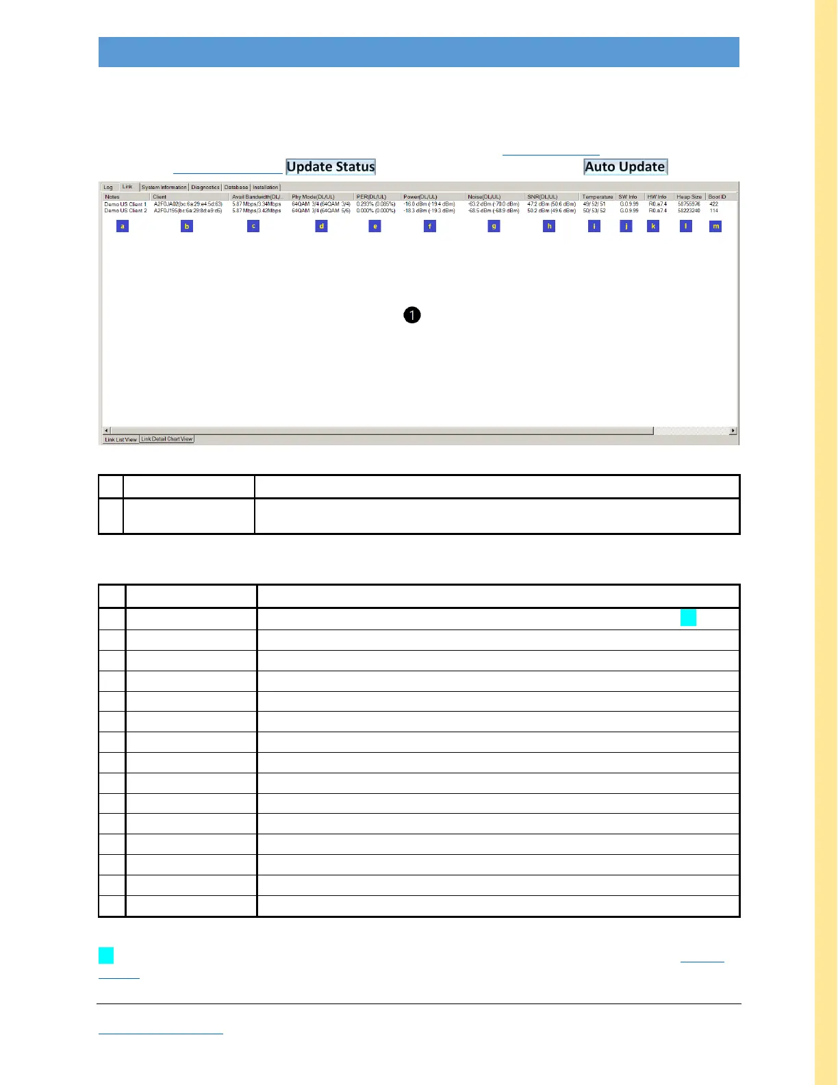 The Link List tabulates CLIENT channel parameters and is used for Remote Update. The list display is not