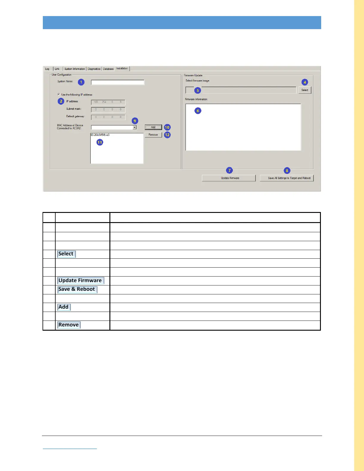 removes selected MAC address (highlighted in field #11)