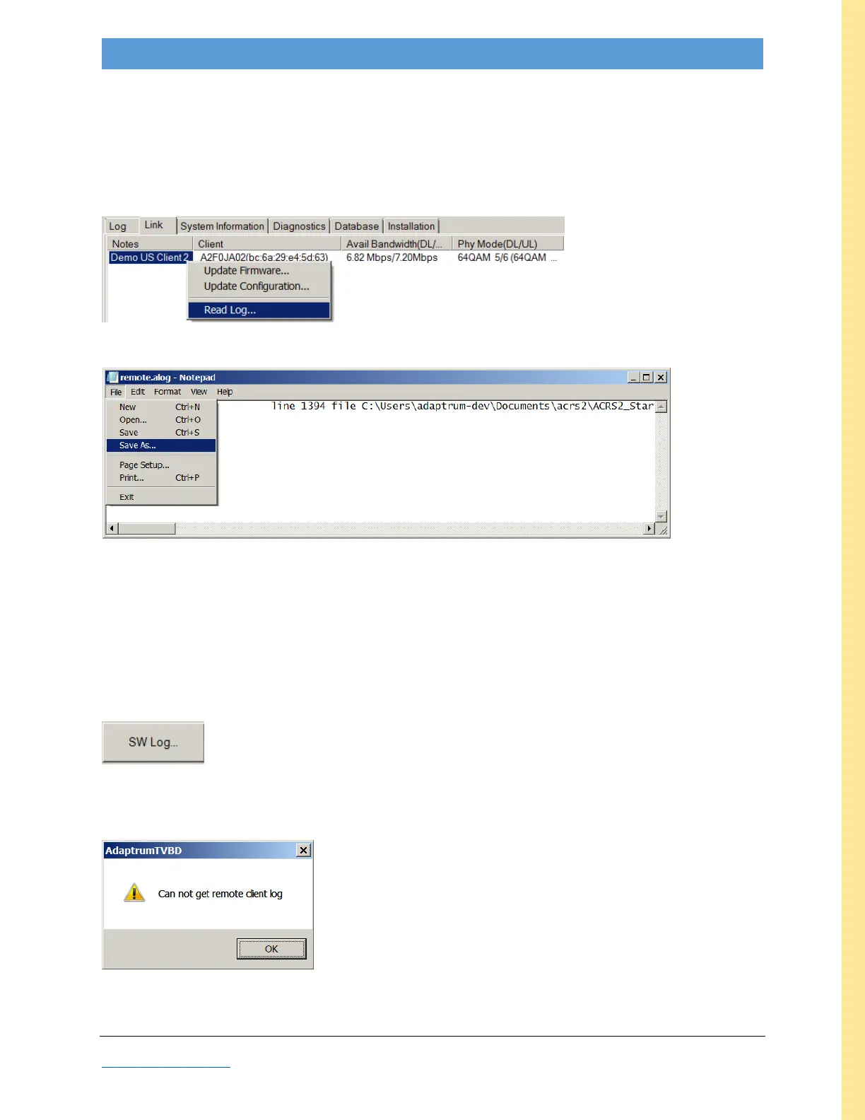 To remote read the CLIENT log file, in the BASE GUI, go to the Link tab, Link List View sub-tab.