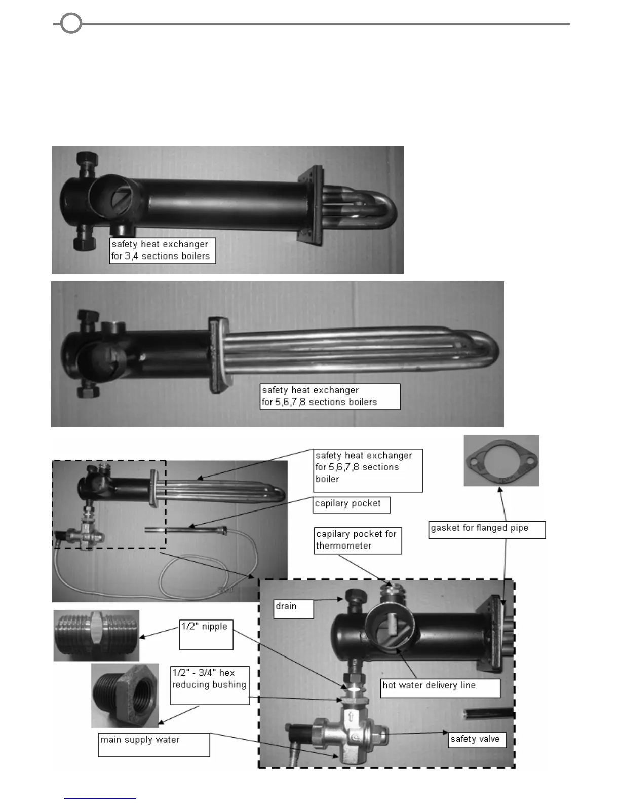 The safety heat exchanger is used to save the boiler in case of overheating. In case of electrical cutout,