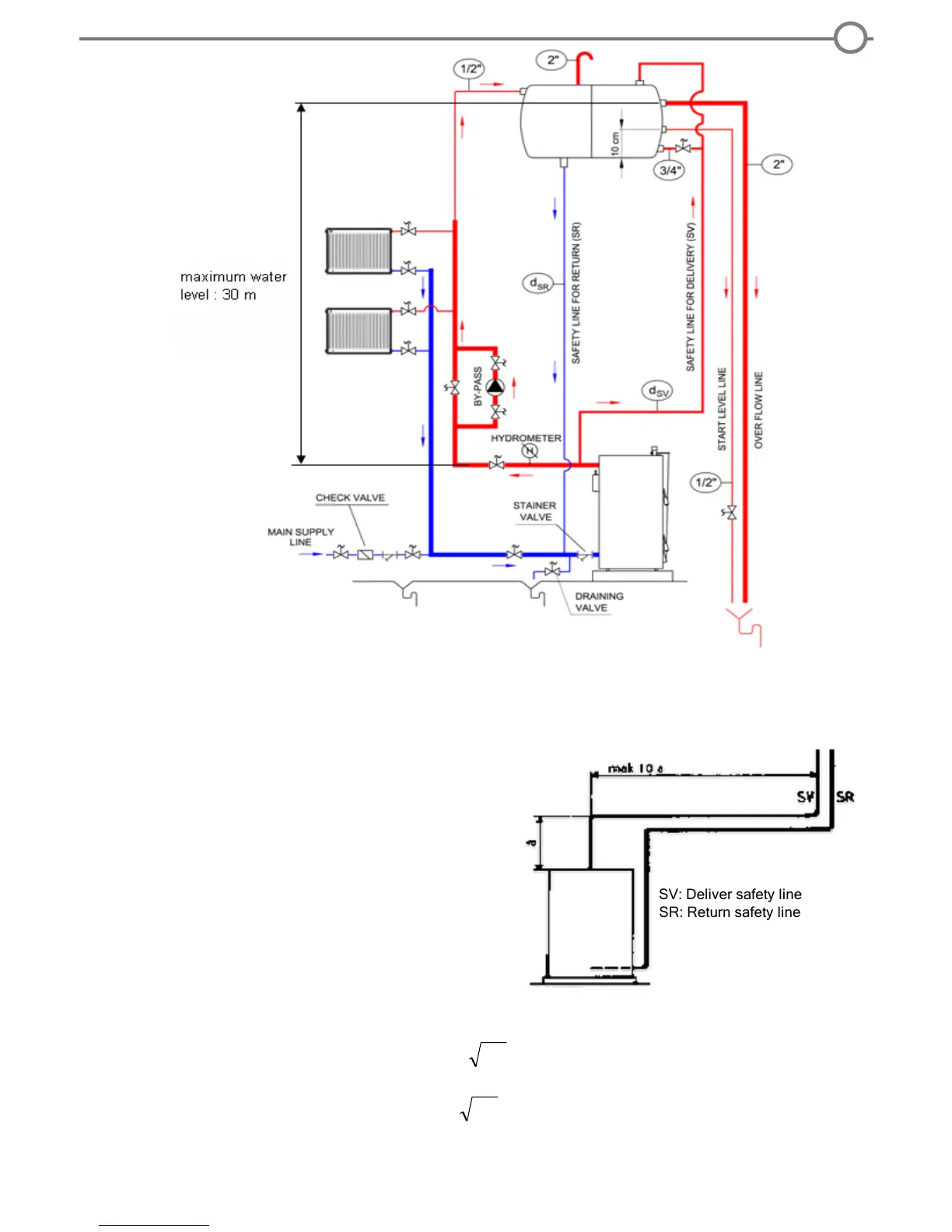 boiler and expansion tank should be installed by an increasing slope up to tank. Following scheme shows the