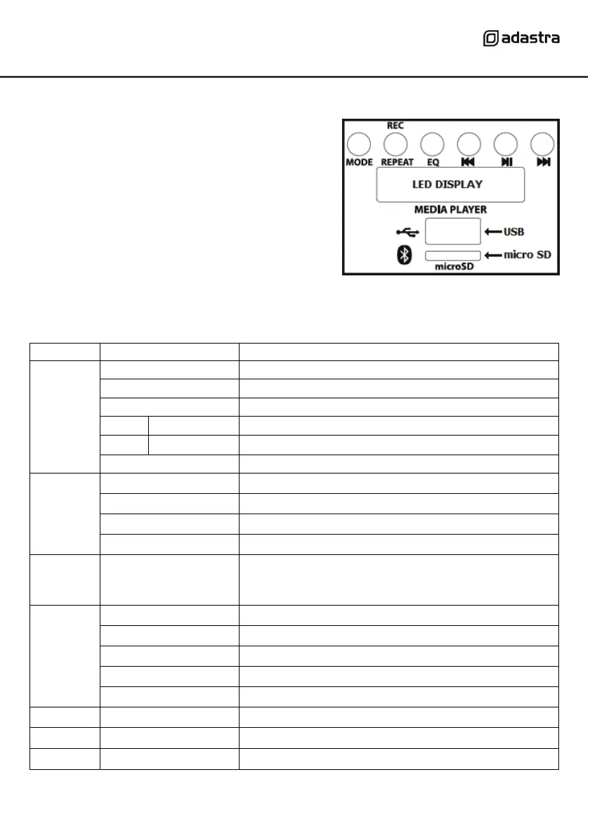 Functions of the media player are described in the table below.