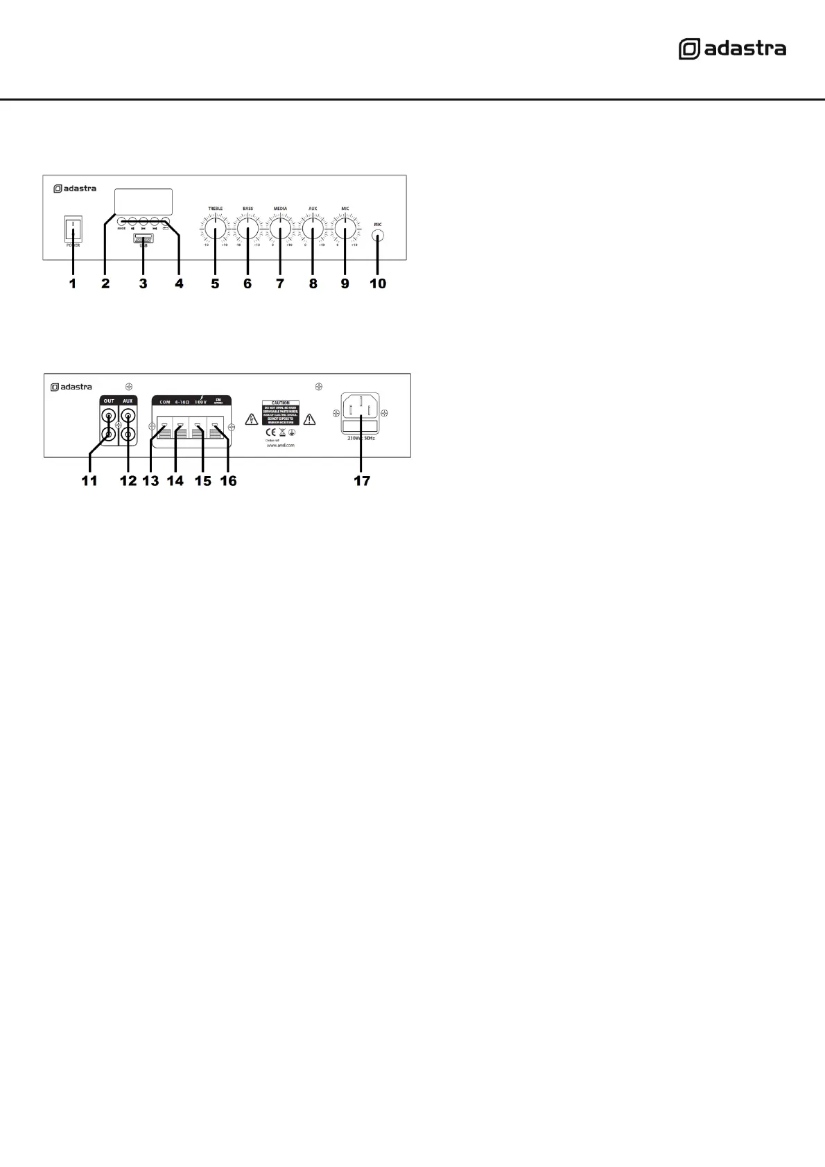 Further amplifiers can be connected from the rear Out RCA sockets (11).