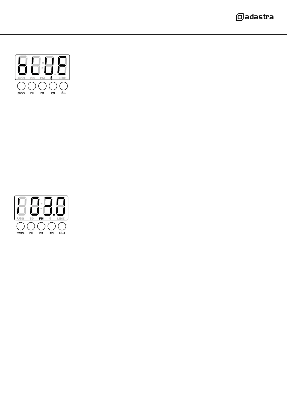 Pressing the mode button until the display shows “bLUE” enters Bluetooth