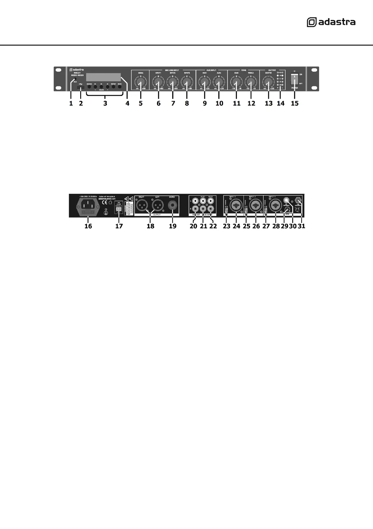 (19) summed to mono. Record outputs on L+R RCA (20) are unaffected by the Master level control.