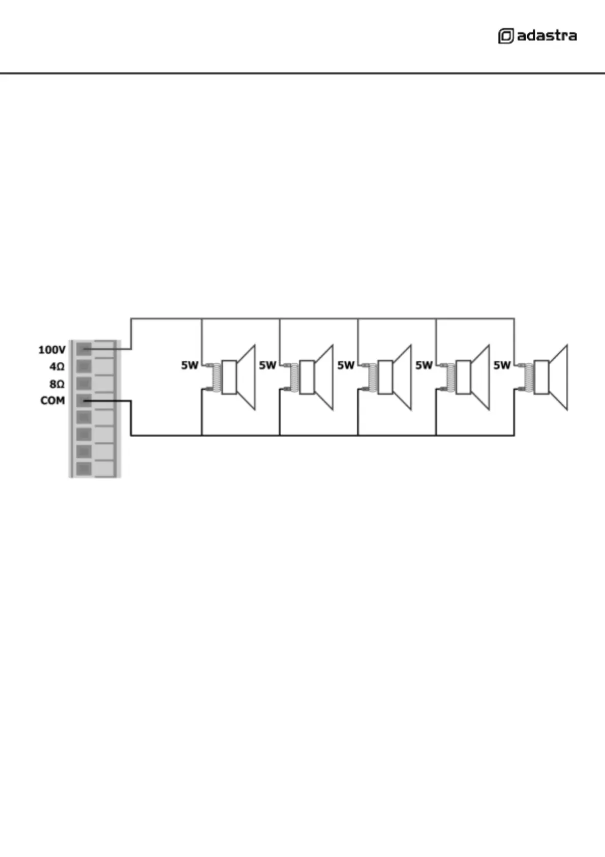 “COM” output to the negative (-) connection of the speaker. Connect further speakers in parallel to the first