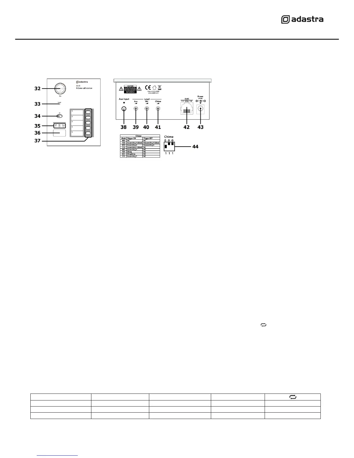 When the required zones are selected, press the call button (36) and if a chime is set, this will be played to the selected zones.