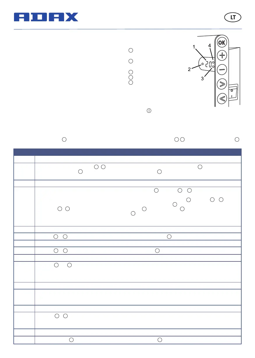 lemputė virš ), komforto temperatūra(dega žalia lemputė virš ). Paspaudę mygtuką , grįžtame į dienos pasirinkimo