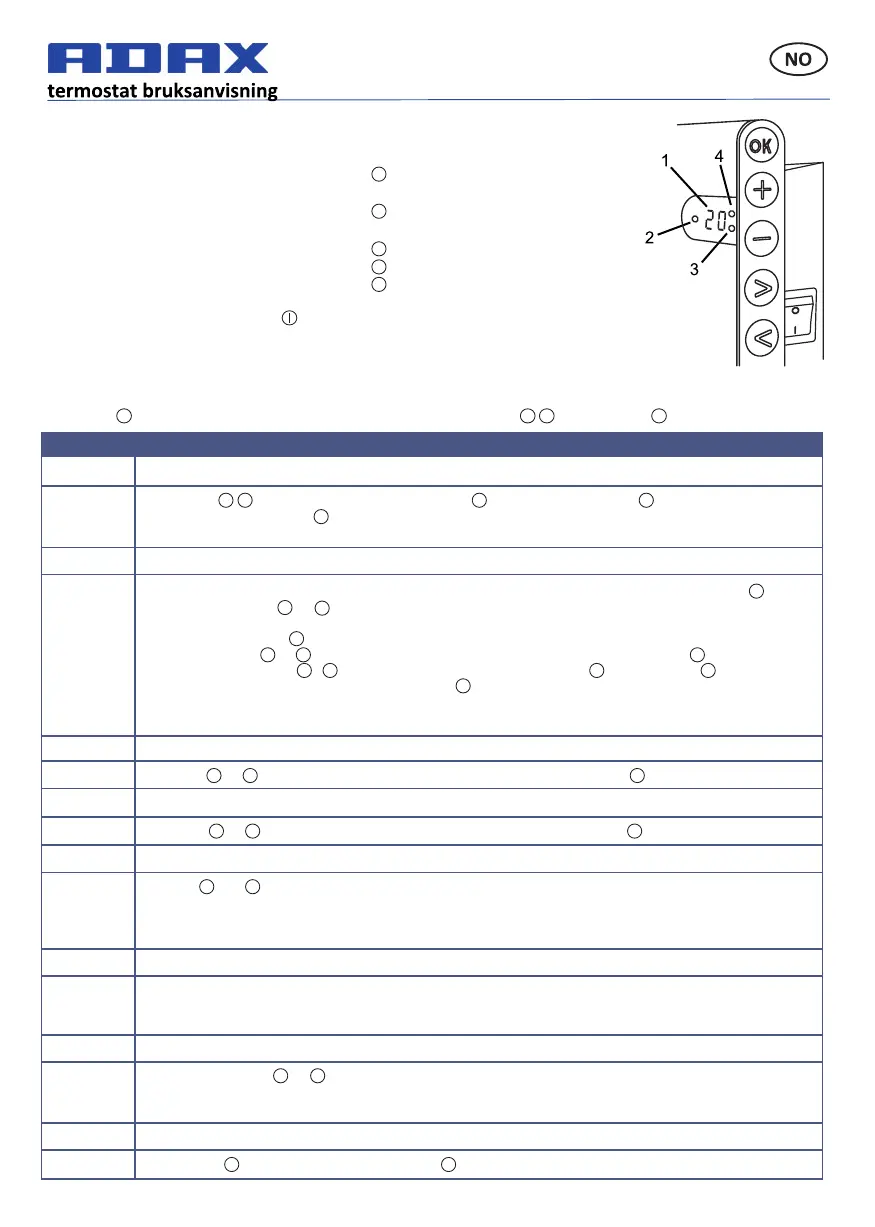 Trykke på og velger ønsket komforemperatur knyet l et ukeprogram. Trykke på for å lagre og forlate menyen.