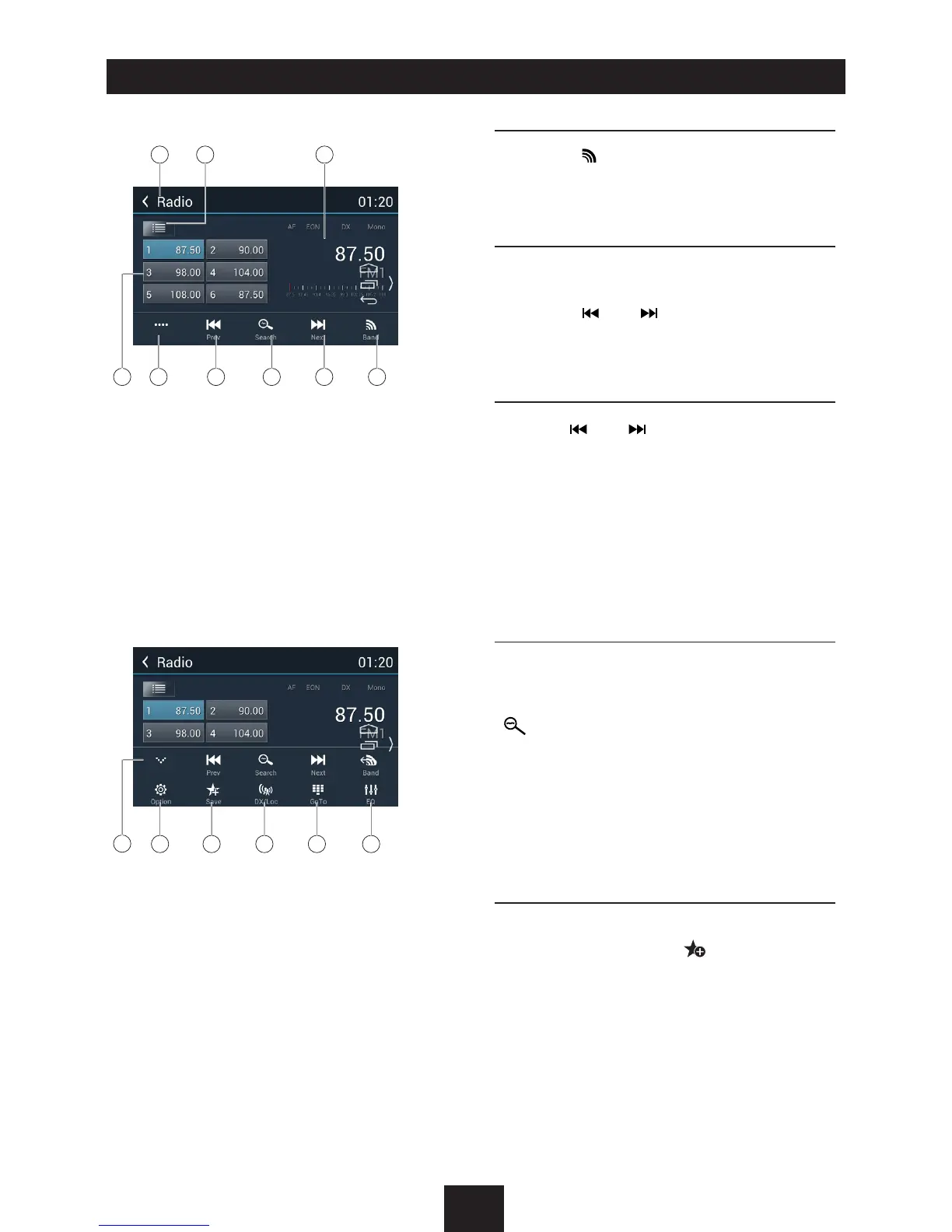 Touch 1~6 to listen to preset station.