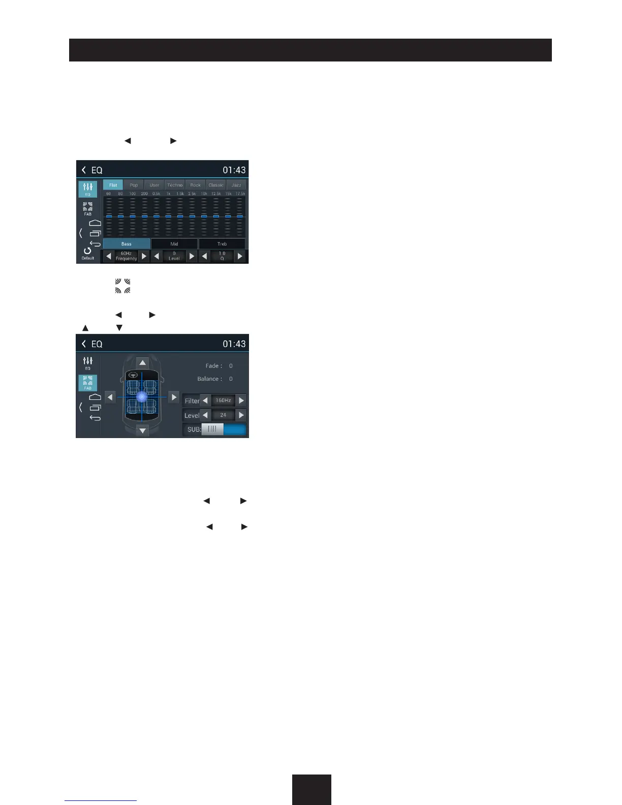 Touch [ ] to enter Fader/Balance/