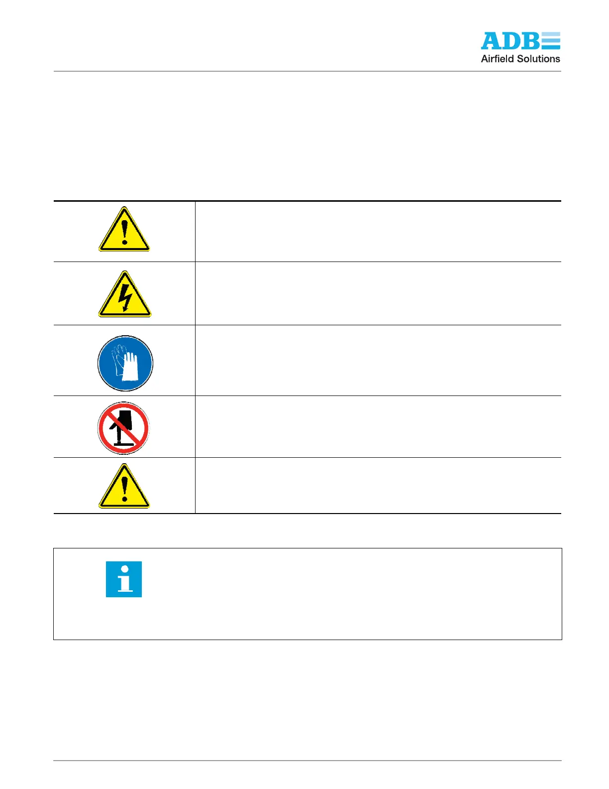 1.0 Safety This section contains general safety instructions for installing and using ADB Airfield