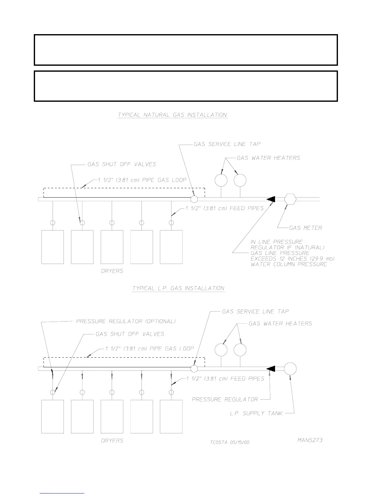 NOTE: The dryer must be isolated from the gas supply piping system by closing its individual manual