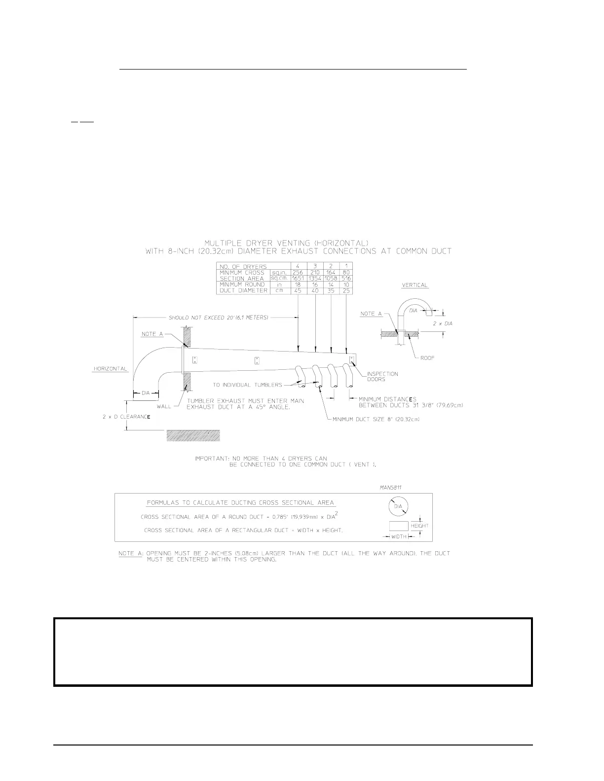 Illus. C shows the minimum cross section area for horizontal multiple dryer venting. These figures must be