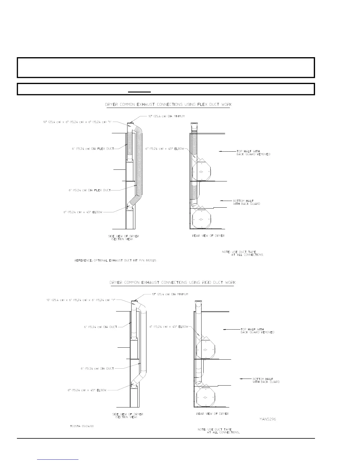 NOTE: Refer to the illustrations on page 21 for examples of multiple dryer (common) venting.