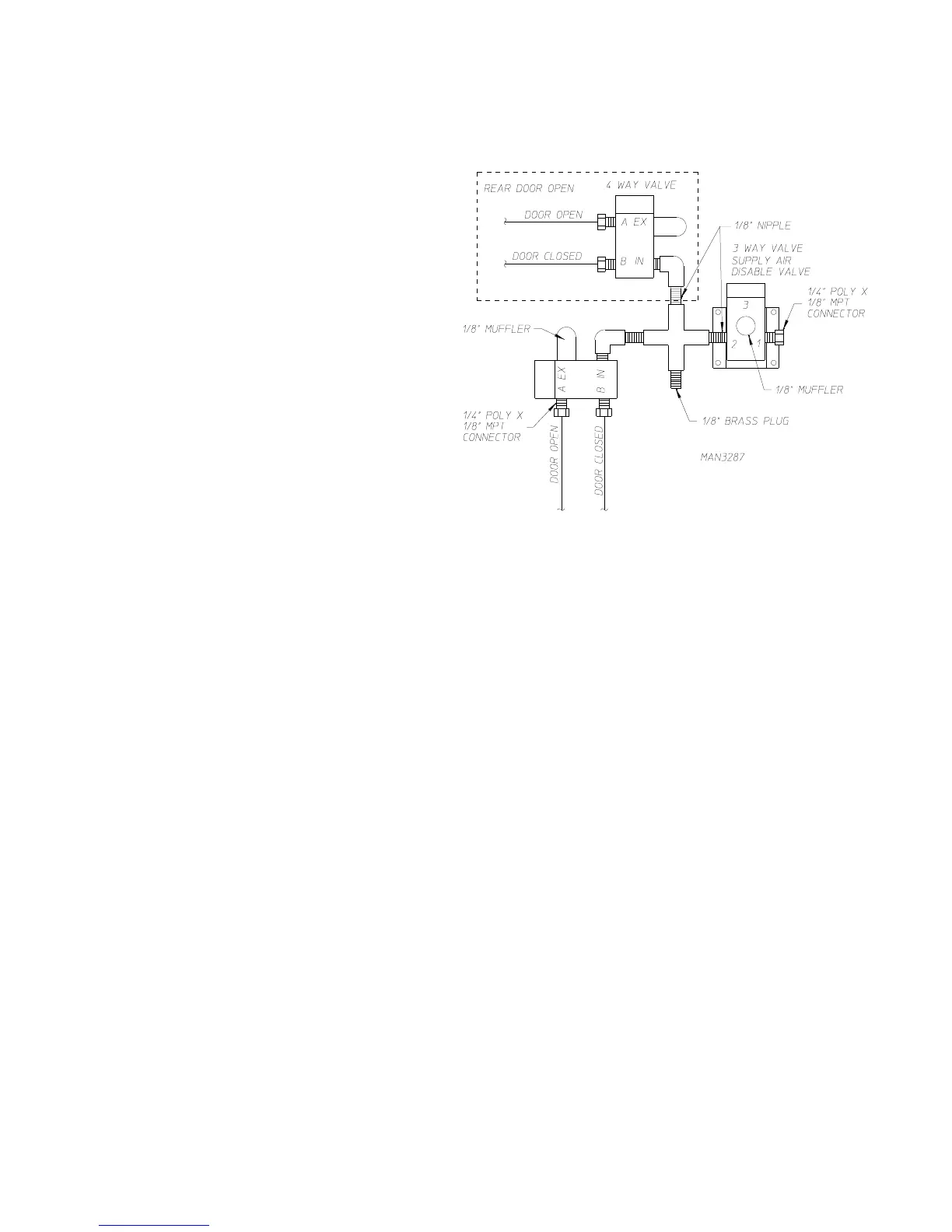 8) Remove the two (2) 1/4" poly compression fittings (door open - door close).