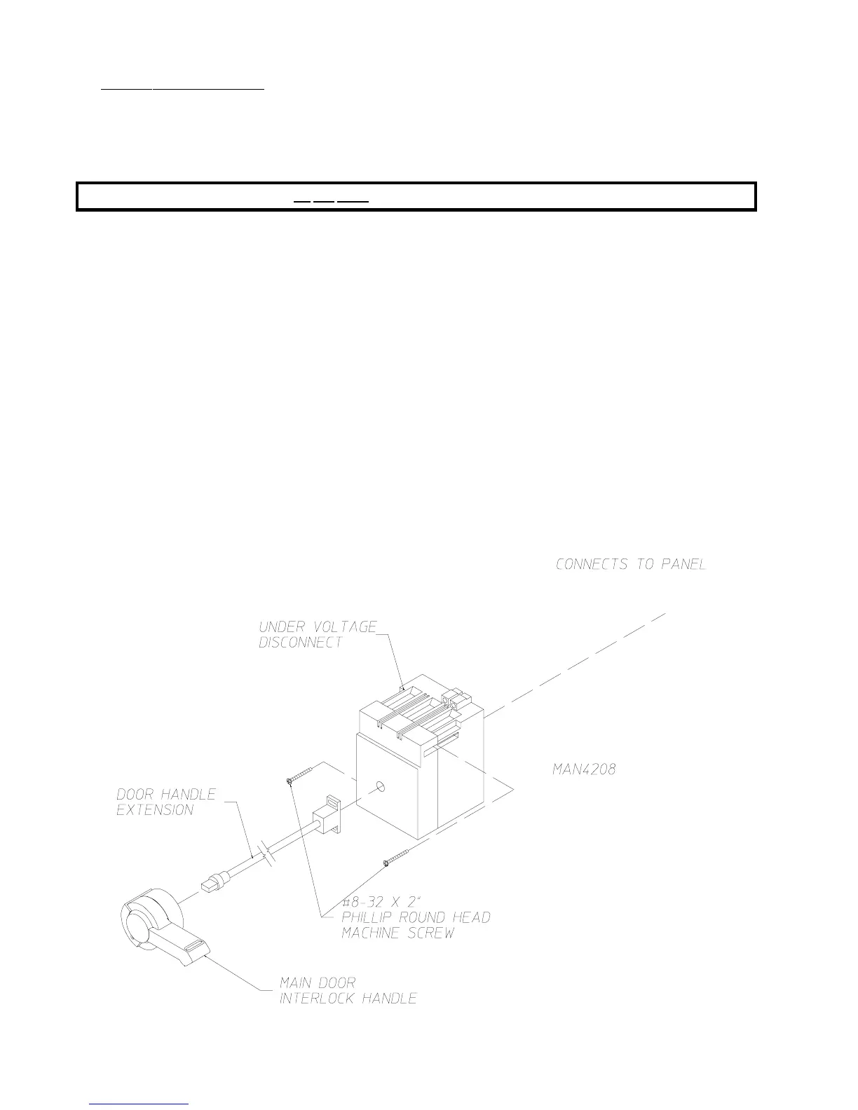 5) Loosen and remove the door handle extension from the under voltage disconnect.