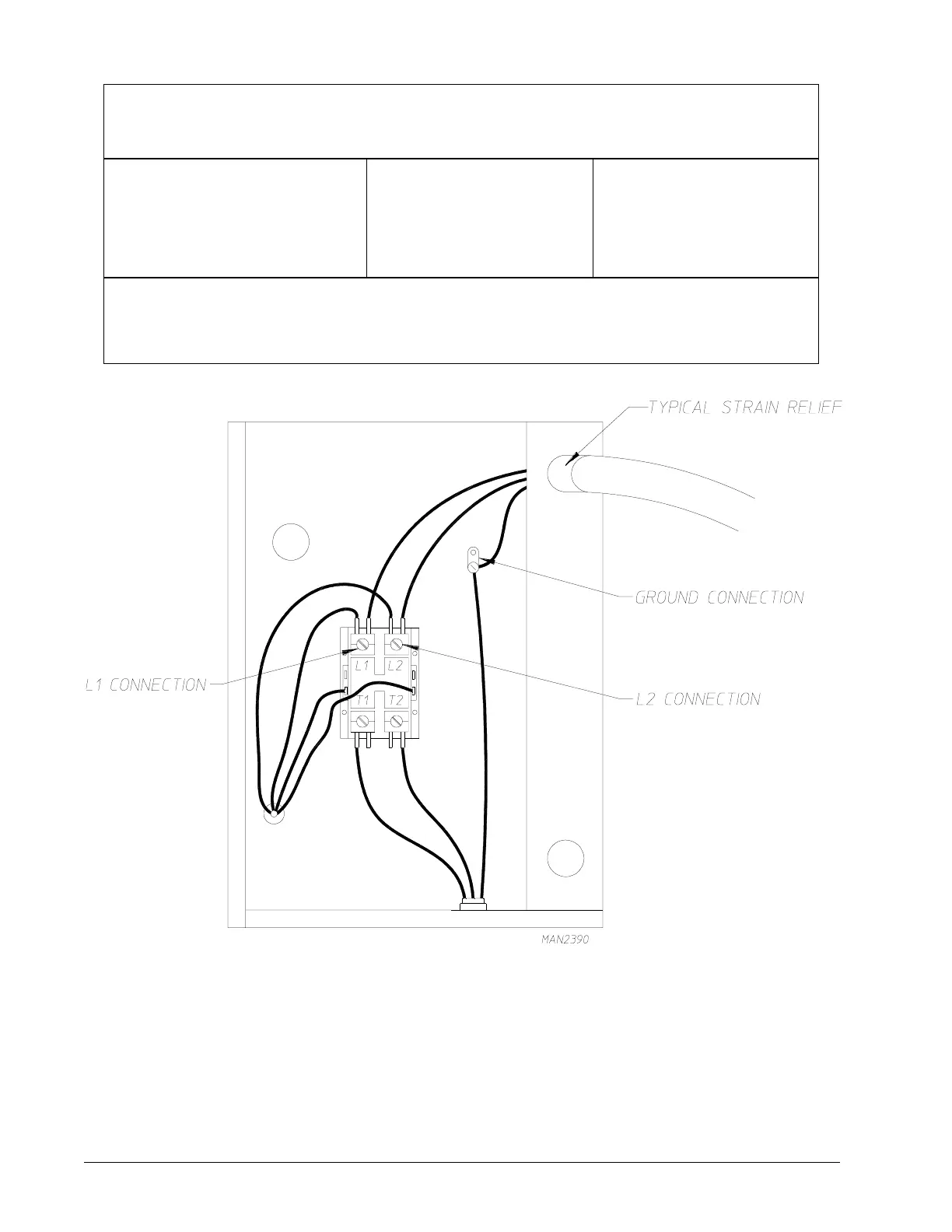 to the service breaker panel. In both cases, a strain relief must be installed where the wiring enters