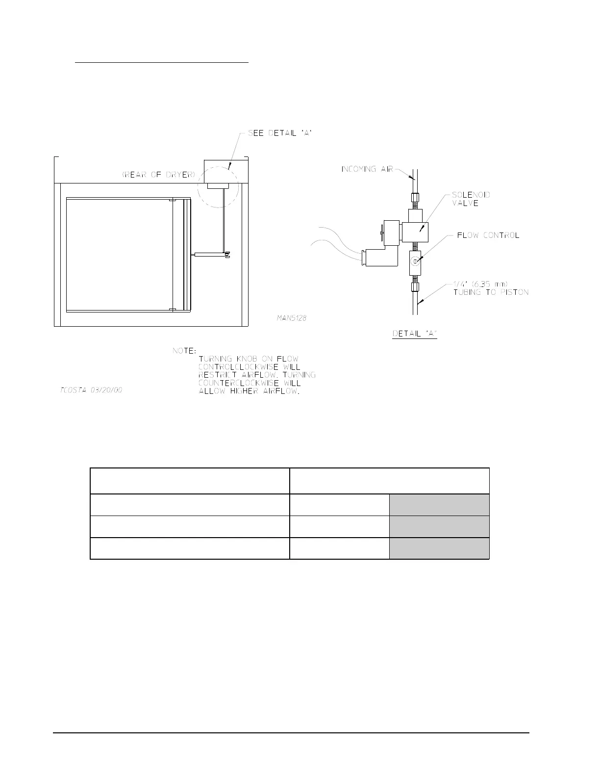 No air regulator or filtration is provided with the dryer. External regulation/filtration of 80 PSI (5.51