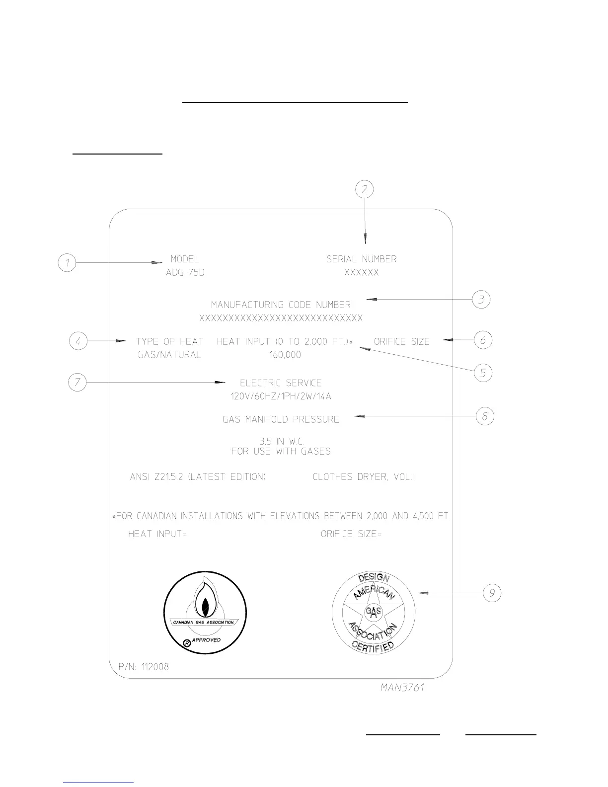 parts information from American Dryer. This information is on the data label located on the inside of the