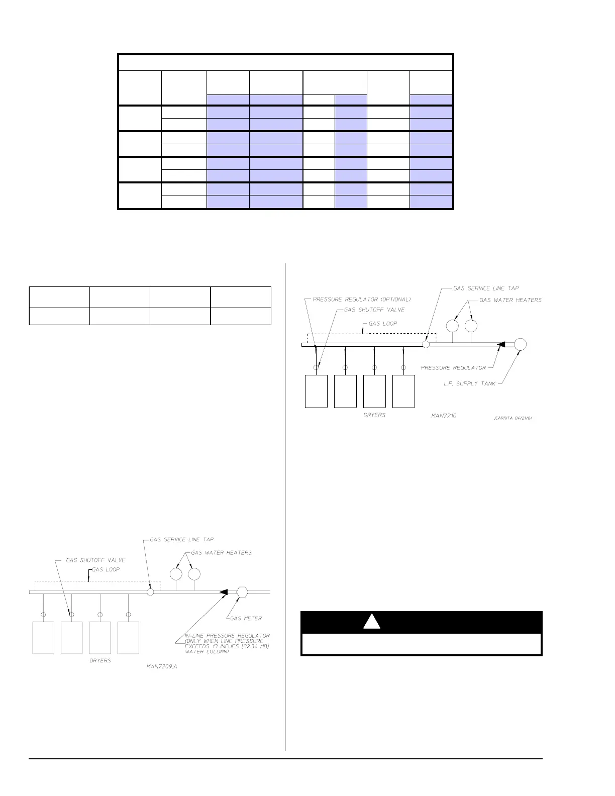 NOTE: Undersized gas supply piping can create a low or